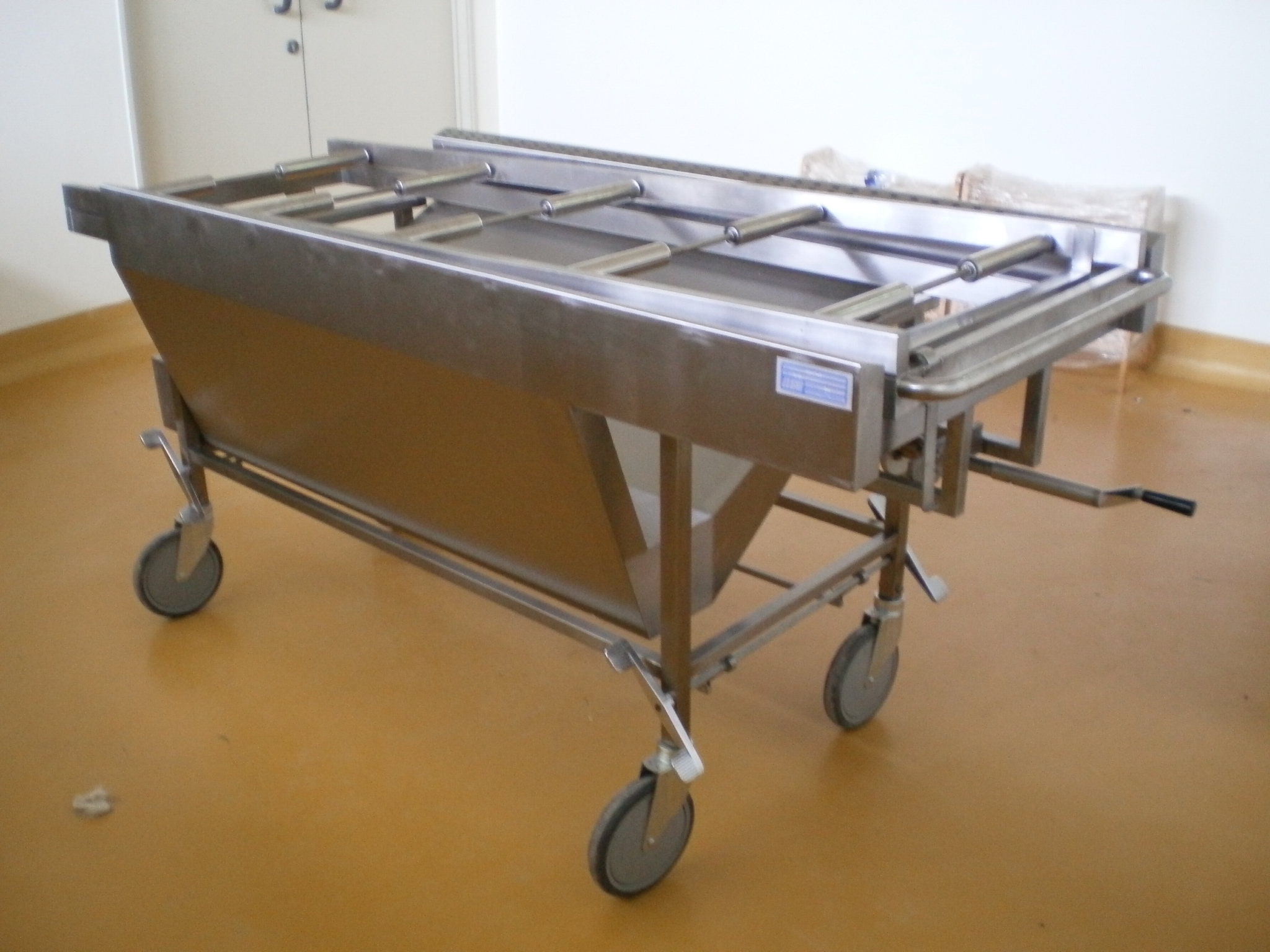 HICO Mobile Autopsy Cart to ensure that the cadaver remains on the single body tray throughout the autopsy procedures. The need in lifting and handling of cadaver is virtually eliminated. The Mobile Autopsy Cart locks into the Wall Mounted Dissecting Sink using HICO cart-latching system. It can be tilted using the hand crank to ensure complete draining of water into the sink. The combination of the Mobile Autopsy Cart and the Wall Mounted Dissecting Sink creates a fully functioning Autopsy Table. The ventilation exhaust duct facility is provided which make this autopsy cart ideal for special Autopsy requirement especially in decomposition cases.